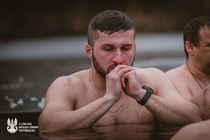 Następnie uczestniczyli w pokazie wprowadzenia jednego z żołnierzy w stan hipotermii, podczas którego obserwowali reakcję organizmu na poszczególne etapy wychłodzenia oraz krok po kroku procedurę ratowania osoby w hipotermii. Po pokazie sprawdzili to w praktyce. Wszyscy na 15 minut weszli do wody.