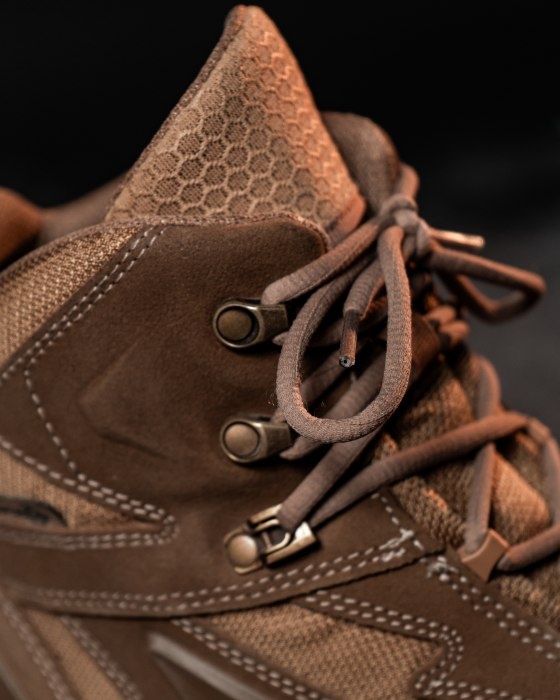 Wersja w rozmiarze 45 ma nieco dłuższą, bardziej „wydłużoną” sylwetkę, ale nie sprawia wrażenia masywnej. Proporcje są dobrze zachowane, a buty wciąż wyglądają zgrabnie. Sznurowadła pracują płynnie, a metalowe oczka i haczyki nie mają żadnych ostrych krawędzi. Wnętrze wyściełano miękką, oddychającą wyściółką Coolmax (o której opowiem więcej później), która nie nasiąka potem i szybko schnie. To szczególnie ważne w modelu letnim, który ma pracować w upale i dużej wilgotności.